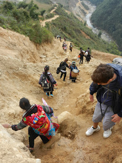 And so we started trekking towards the villages and the home stay cottage in Black H'Mong tribe. After descending three hours and crossing the gorge with the main river, we then arrived to one of the bigger villages of the Black H'Mong tribe. There we enjoyed our lunch and visited one primary school, where nowadays they actually teach English for the children. Our guide told that she had learned her English speaking skill just from the tourists. On the way down we gazed upon on some of the most beautiful views before enjoying a lunch in the village, and after lunch continued to another village a bit further away for the home stay.