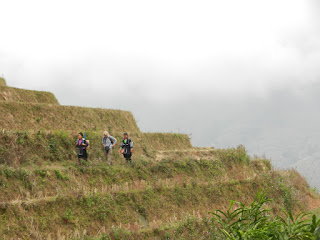 The views on the way down were amazing, snaking mountain rivers and vast rice terraces ascending to the mountains and reaching the clouds. I tried to capture them with my camera, but one really can't imagine the whole feeling through a lens. We arrived to the home stay around 2 or 3 pm. There we first enjoyed some local green tea and after that just walked around for two hours circling in and out the village and roaming the close by trails. They also served us some fries with fresh garlic which was very nice from them. We also saw lots of kids returning from the school with donated Unicef backpacks.